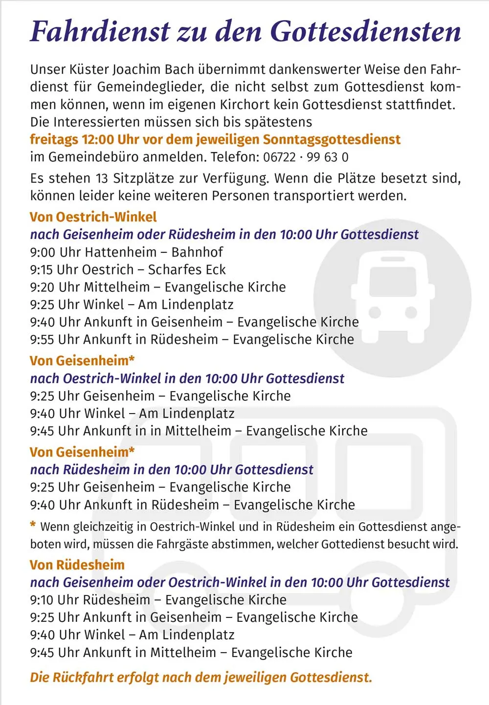 Gottesdienste & Fahrdienst